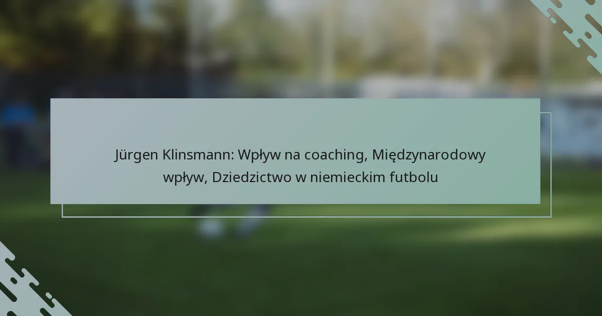 Wpływ trenerski Jürgena Klinsmanna w piłce nożnej zaznacza się jego innowacyjnymi strategiami oraz naciskiem na rozwój zawodników. Jego podejście znacząco ukształtowało nowoczesne praktyki trenerskie, szczególnie w niemieckiej piłce nożnej, gdzie jego dziedzictwo wciąż rezonuje.